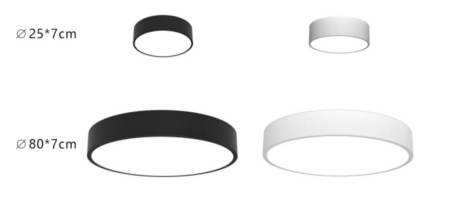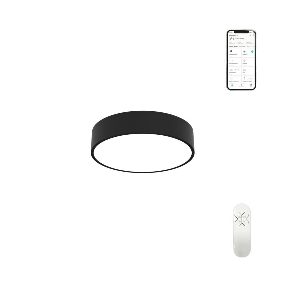 Stropní svítidlo, základna kov, povrch bílá/černá, dif plast opál, LED 18W/65W, dálk ovl. (včetně), nebo tel. TUYA Zigbee, nast CCT teplá 3000K-denní 6000K, stmív., Ra80, 230V, IP20, rozměry dle typu.