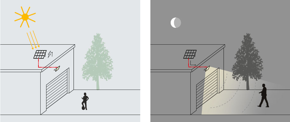 | Napájení | Zdrojem napájení je solární panel, ze kterého je během dne nabíjen akumulátor 4Ah, který je součástí svítidla. Z akumulátoru v nočních hodinách napájeno svítidlo. |