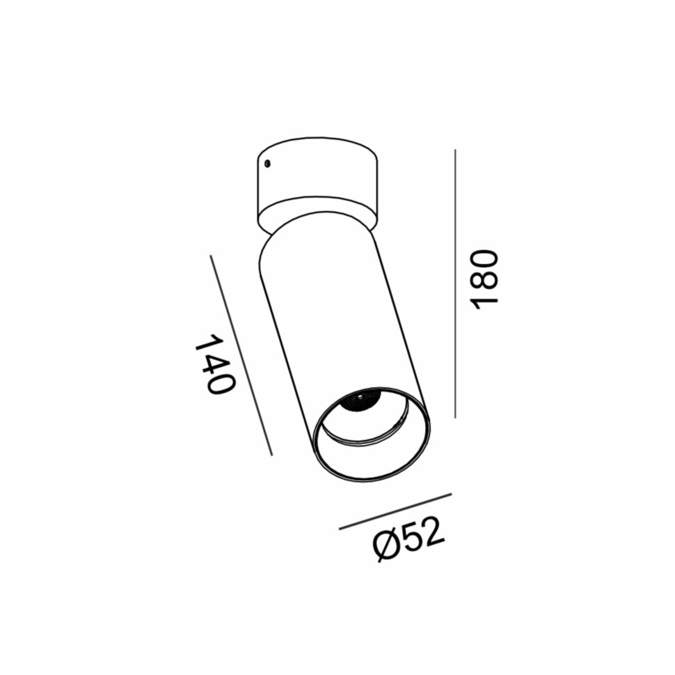 - Stropní přisazené bodové svítidlo, nast. směr svícení, těleso hliník, povrch černá mat, LED 9W, 540lm, teplá 3000K, vyzař. úhel 50°, Ra90, 230V, IP20, rozměry d=52mm, h=140mm.
