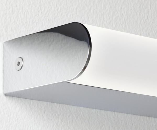 Nástěnné svítidlo, základna kov, povrch chrom lesk, difuzor polykarbonát opál, LED 7,9W/12,2W/14,4W, teplá 3000K, Ra80, 230V, do koupelny IP44, tř.2, rozměry dle typu, vč, trafa