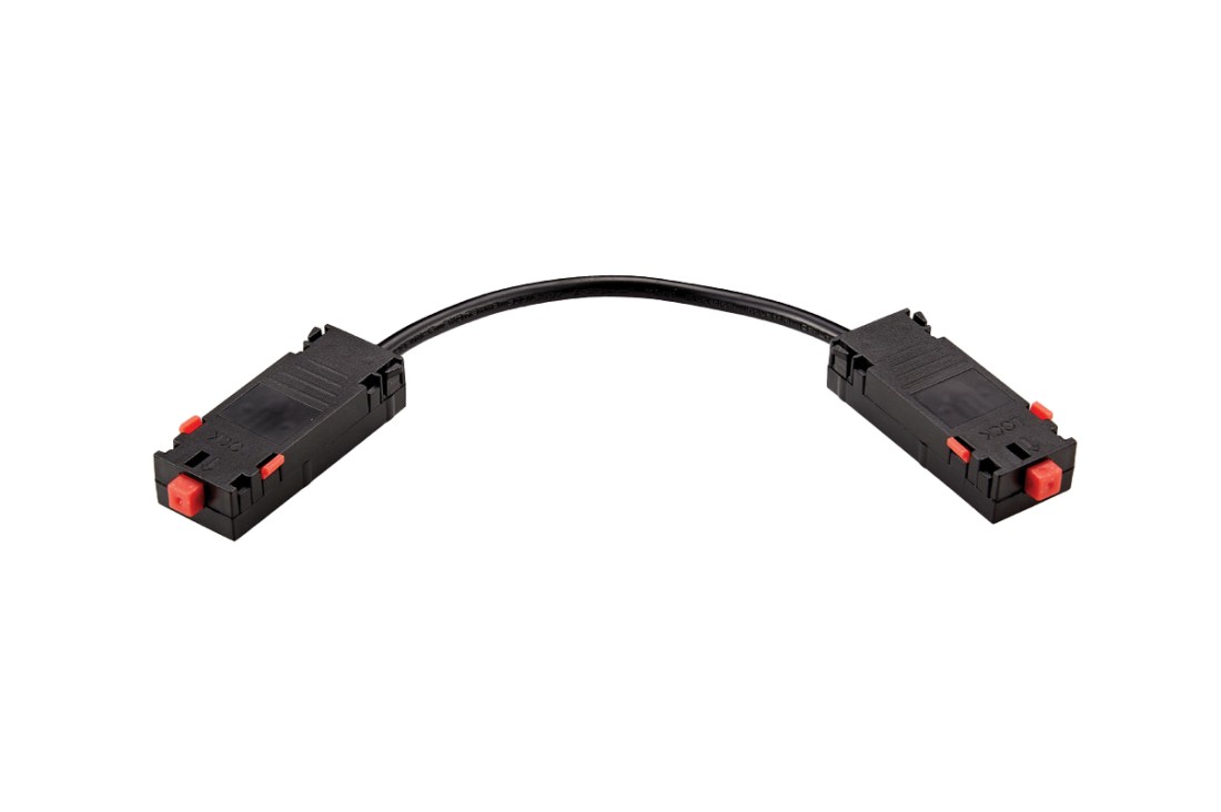 BRAGO Flex con, 230V - Vkládací, flexibilní spojovací konektor pro napájení magnetického systému osvětlení, materiál kov a plast, černý, 230V, IP20, rozměry 200x25x20mm.