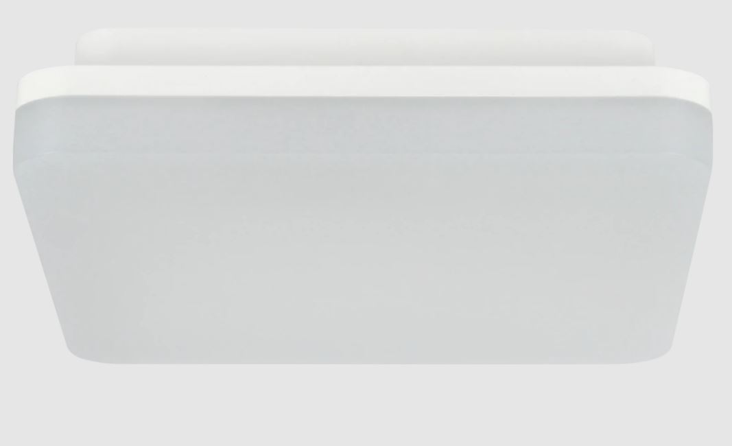 Stropní svítidlo, HF senzor pohybu, záběr 360°, dosah 8m, čas 90s, plast bílá, dif plast opál, LED 18W, teplá 3000K/1900lm, neutrální 4000K/2000lm, IP54, tř.2, rozměry 220x220x51mm.