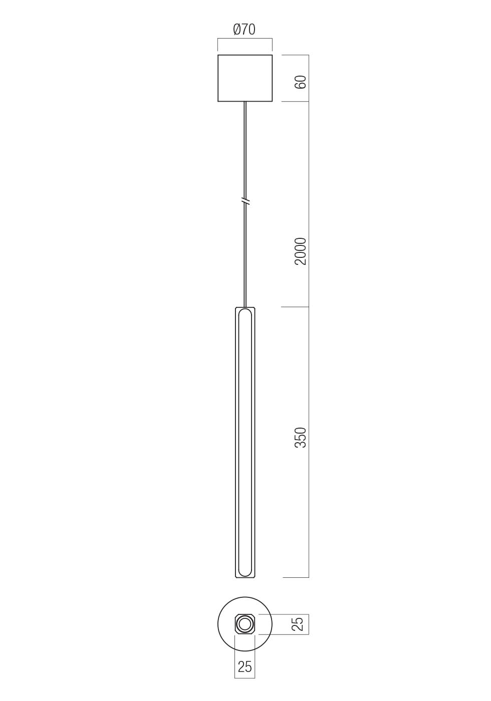 Závěsné bodové svítidlo, hliník, povrch bílý/stříbrnokávový/hnědý/černý, LED 9,5W, teplá 2700K/681lm, teplá 3000K/789lm, stmív. TRIAC, Ra90, 230V, IP20, tř.1, rozměry d=25mm, výška dle typu, vč. záv. kabelu l=2000mm, lze zkr.