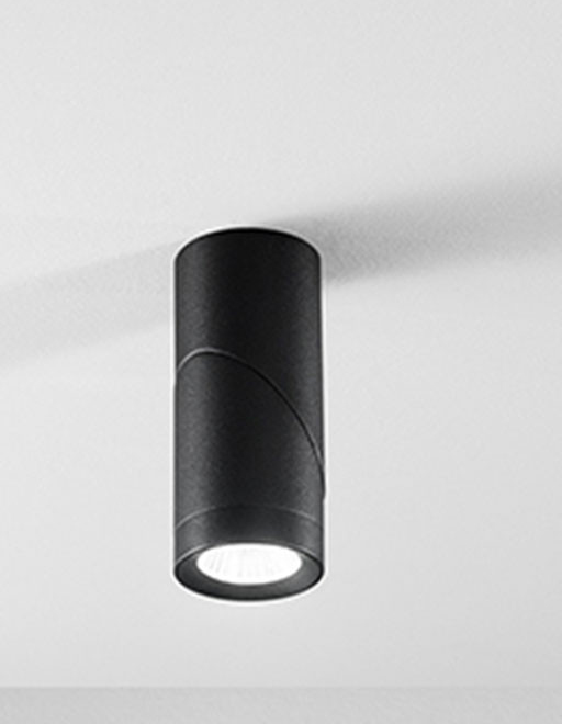 Stropní přisazené bodové svítidlo, výklopné +-90°, těleso kov, povrch bílá mat/černá mat, LED 8W, 480lm, teplá 3000K, 230V, IP20, rozměry d=60mm, h=140mm.