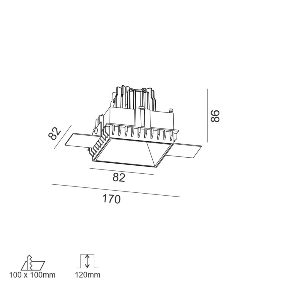 Stropní, podhledové, bodové svítidlo, bezrámečkové, hliník, komínek bílá/černá, LED 9W, 924lm, teplá 3000K/neutrální 4000K, vyzař. úhel 55°, Ra90, 230V, IP44, rozměry 82x82x86mm.