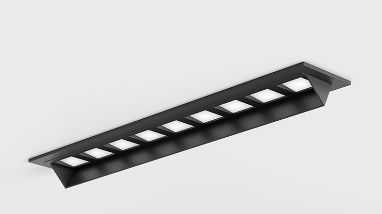 Stropní podhledové bodové buňkové svítidlo, ASYMETRICKÉ WALLWASHER, těleso hliník, povrch černá, rámeček černá/bílá, LED 10W, 14W, teplá 3000K/neutrální 4000K, vyzař. úhel 48°x25°, Ra90, 230V, IP20, rozměry 218x45x38mm.