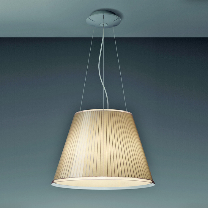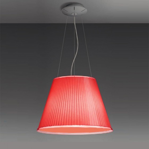 Závěsné svítidlo základna kov, povrch šedostříbrná, stínítko přírodní pergamenový papír/červený + plast čirý, pro žárovku, 230V, IP20, tř.2, d=358/550mm, lankový závěs l=2000mm, lze zkrátit