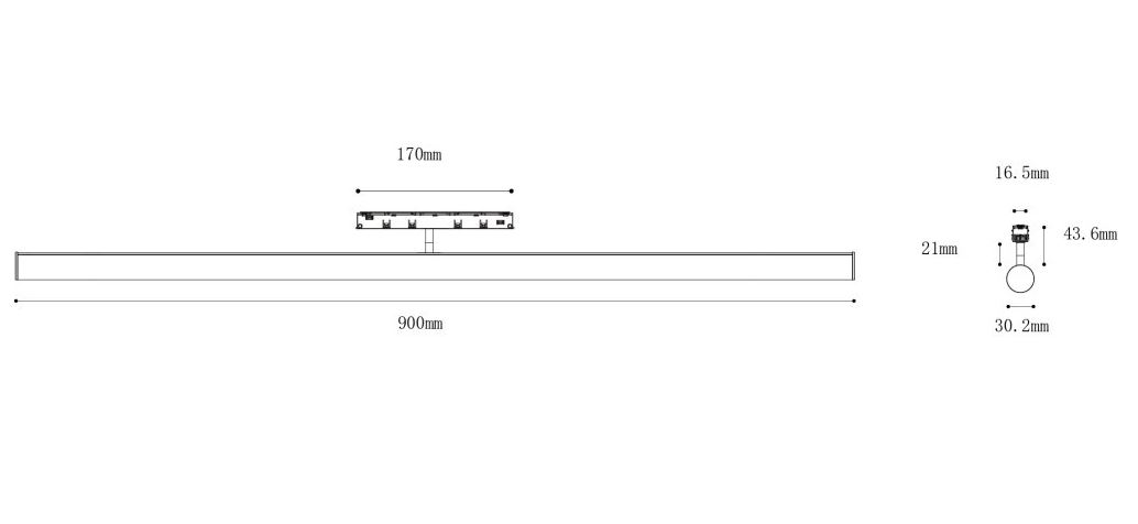 COCOM 18W DALI - Svítidlo do mag. systému, kov, černá, dif plast opál, LED 18W, 1675lm, teplá 3000K, stmív. DALI, vyz. úhel 150°, Ra90, 48V, IP20, rozměry 900x43x30mm.