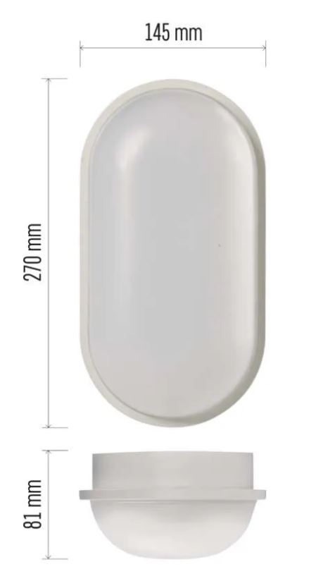 COMINE O 20W IP65 - Přisazené venkovní svítidlo, oválné, těleso plast bílá, difuzor plast opál, LED 20W, 1900lm, neutrální 4000K, Ra80, 230V, IP65, rozměry 270x145x81mm.
