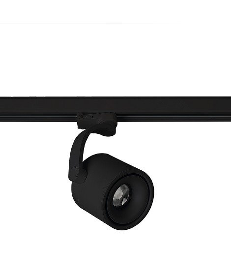 Bodové svítidlo do 3F lišty, nastavitelný směr svícení, těleso hliník, povrch bílá/černá, LED 12W, 1020lm, teplá 3000K, 230V, IP20, rozměry: d=100mm, h=130mm.