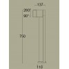 Sloupkové svítidlo, těleso hliník, černá nebo šedočerná, difuzor plast opál, nastavitelný směr svícení. LED 12W, 600lm, teplá 3000K, Ra80, dle provedení se zásuvkou SCHUCO, 230V, IP54, tř.1,rozměry 750x137x110mm
