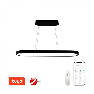 Závěsné svítidlo, kov, bílá/černá, dif plast opál, LED 42W, 2940lm, smart TUYA, Matter, Zigbee 3.0, dálk ovl. (souč.) nebo tel. CCT nast teplota teplá 2700K - denní 6500K, stmív., 230V, IP20, 1200x40x300mm, závěs lanko l=1200mm.
