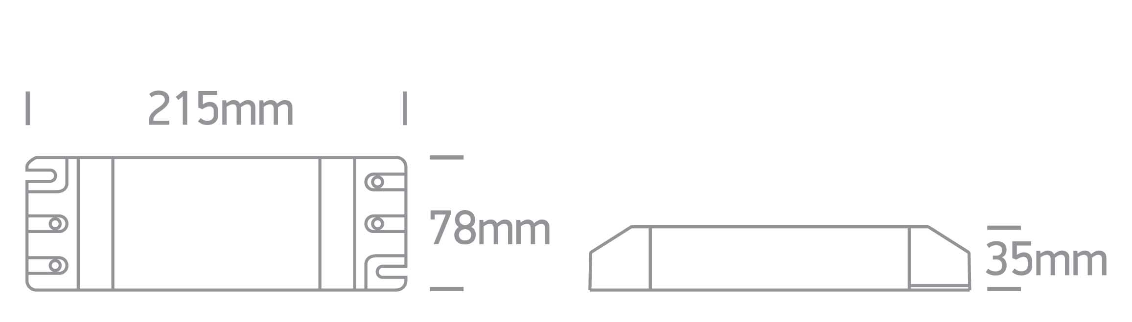 Stmívatelný zdroj LED driver pro LED 12-50W/20-150W/75-200W;, 24VDC, TRIAC, 230V, IP20, tř.2, rozměry dle typu.