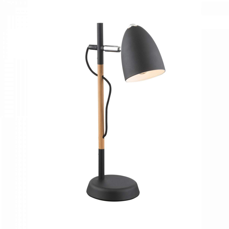 Stolní lampa, dvě ramena/nastav směr svícení, těleso kov, povrch černá/bílá/měděná/šedá, dřevěné a chromové detaily, kabel textil, pro žárovku 1x60W/1x25W, E27/E14, 230V, IP20, tř.1, rozměry dle typu, vč vypínače