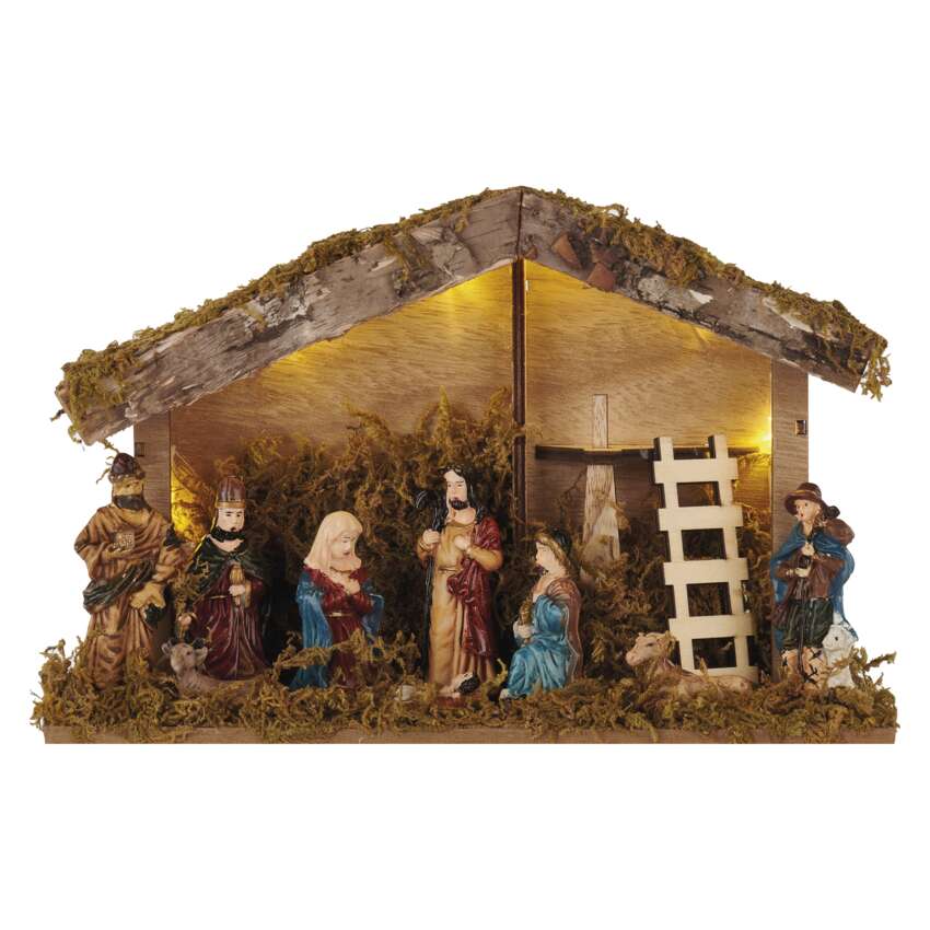 VB betlém, 6 LED, na baterie, 26x17cm - Vánoční betlém, vnitřní, stále svítící, těleso plast, 6 LED, teplá 3000K, na baterii 2xAA, 1,5V, IP20, rozměr l=26,3cm, h=17cm
