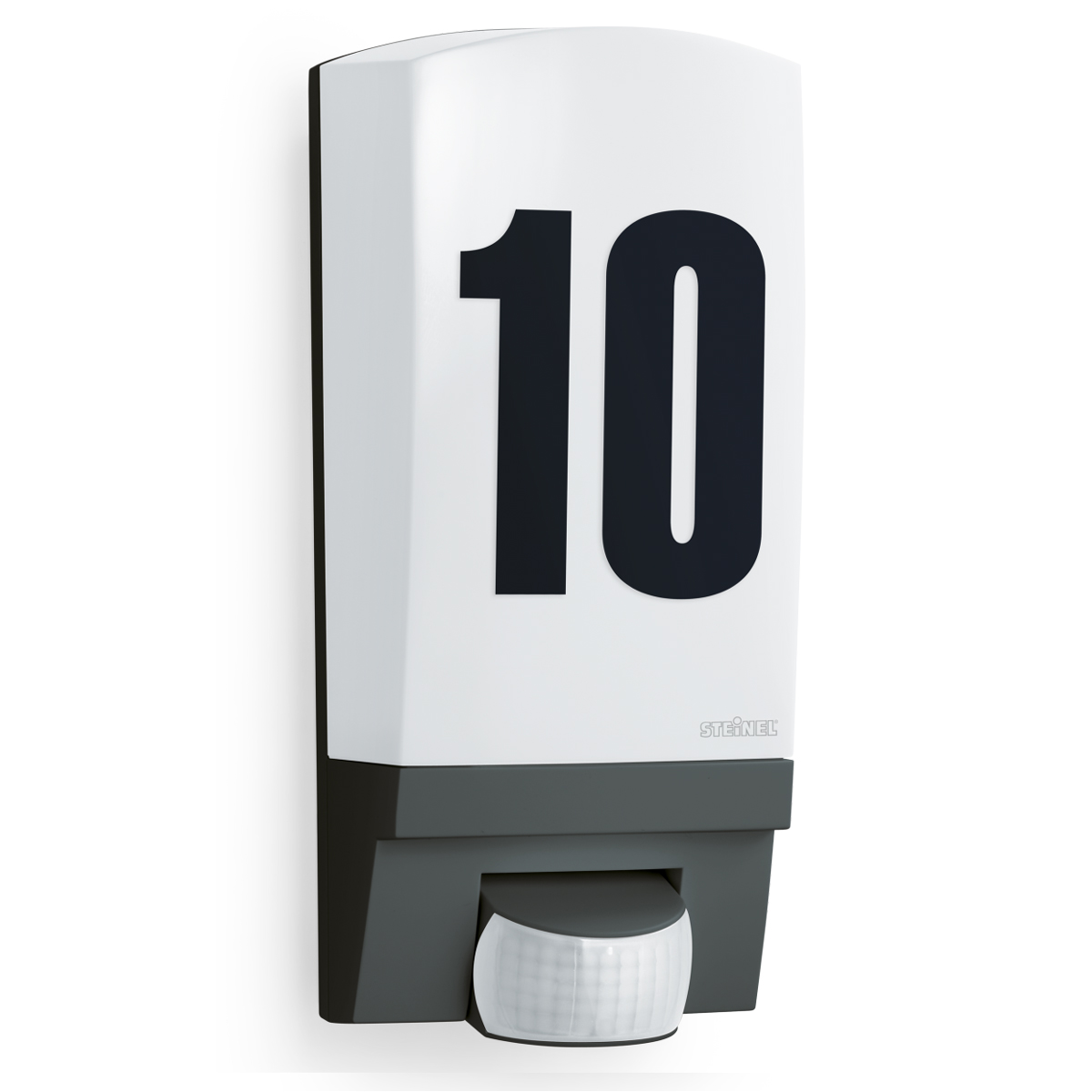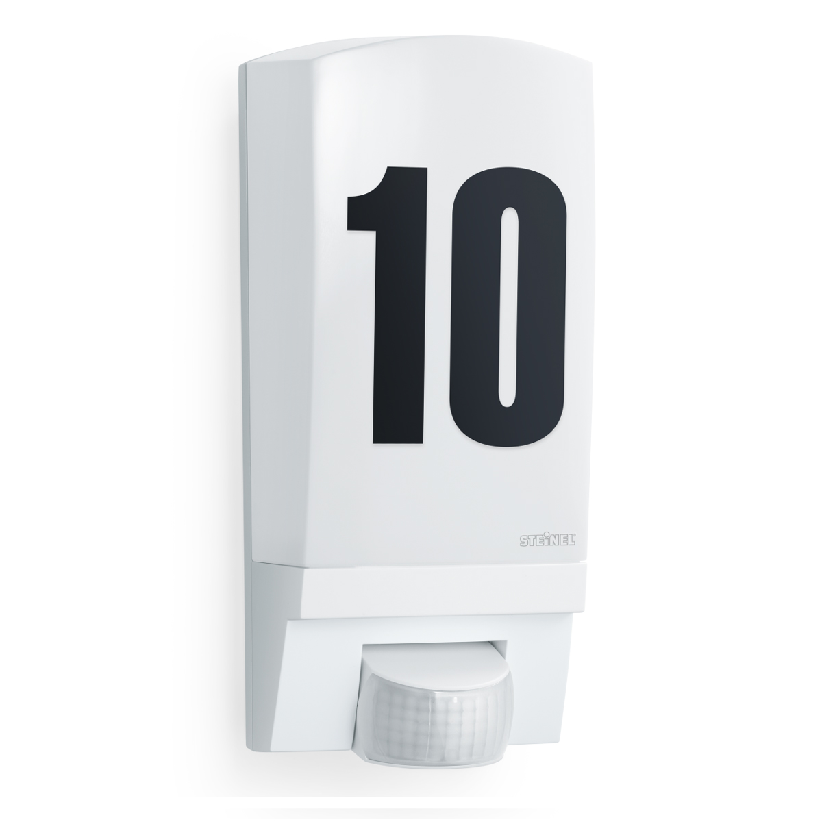 PIR - Nástěnné svítidlo venkovní se senzorem pohybu záběr 180°, dosah cca 10m, čas zapnutí 8s-35min, nastav soumraku 2-2000lx, těleso plast, barva černá, n bílá, difuzor plast, pro žárovku 1x60W, E27, 230V, IP44, 255x120x110mm