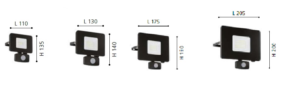 Venkovní reflektor se senzorem PIR, nastavitelný směr svícení, senzor PIR, záběr 120°, dosah 12m, čas 5s-60min, hliník, černá nebo bílá, sklo čiré, LED 10W, 20W, 30W, 50W, neutrální 4000K, Ra80, 230V, IP44, rozměr dle typu