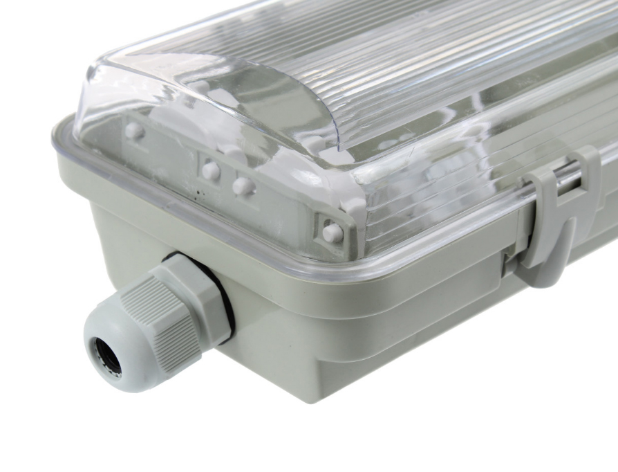Průmyslové svítidlo prachotěs, těleso plast bílá, kryt plast čirý, pro 2xLED zářivku, T8/G13, těleso plast bílá, kryt plast čirý, 230V, IP65, rozměry 60x107mm, l=650mm/1560mm,LED zářivky samostatně, jednostranné zapojení