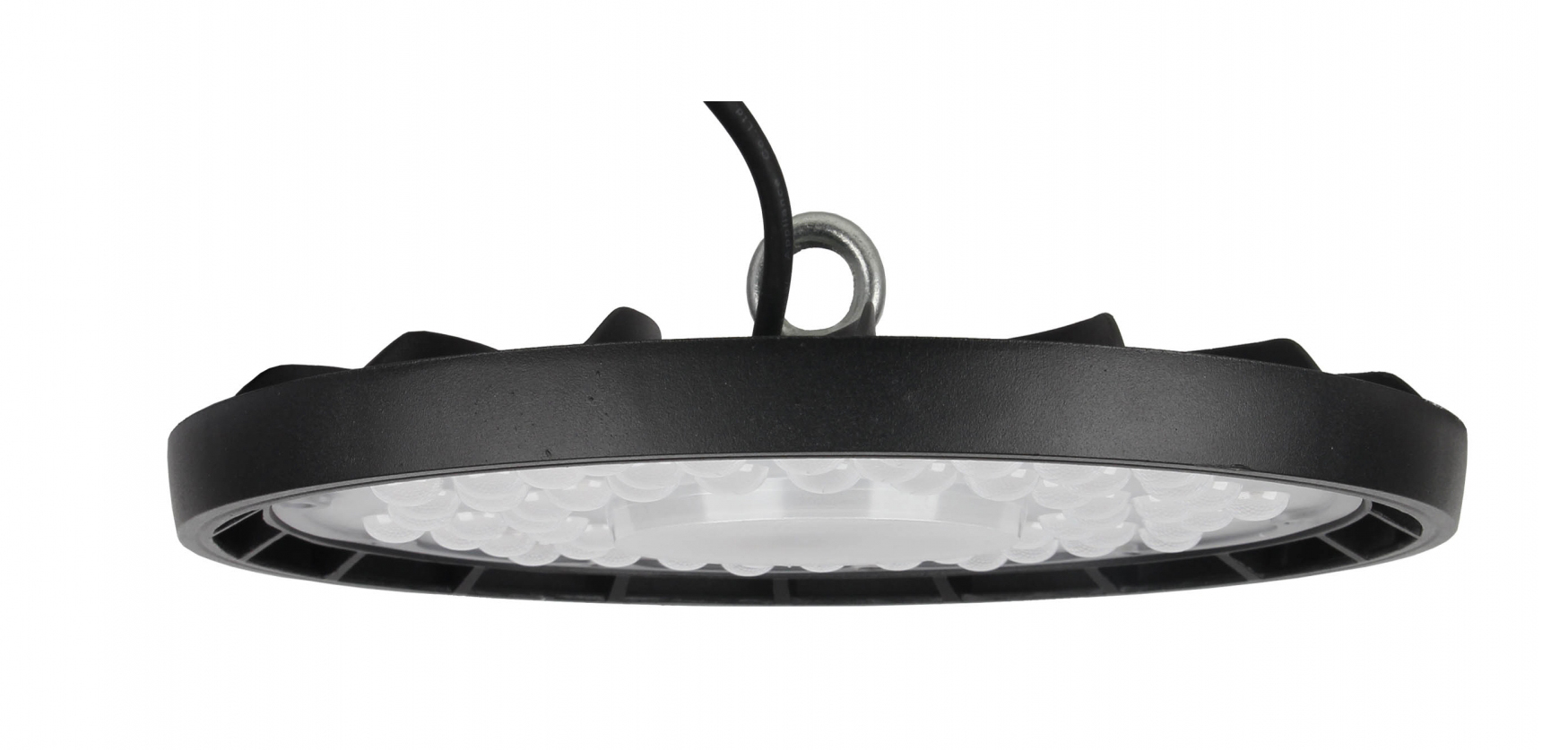 Závěsné průmyslové svítidlo, těleso hliník, povrch černá, krycí plast čirý, LED 100W/12500lm, 200W/25000lm, neutrální 4000K, Ra80, vyzař. úhel 90°, IK07, 230V, IP65, rozměry dle typu