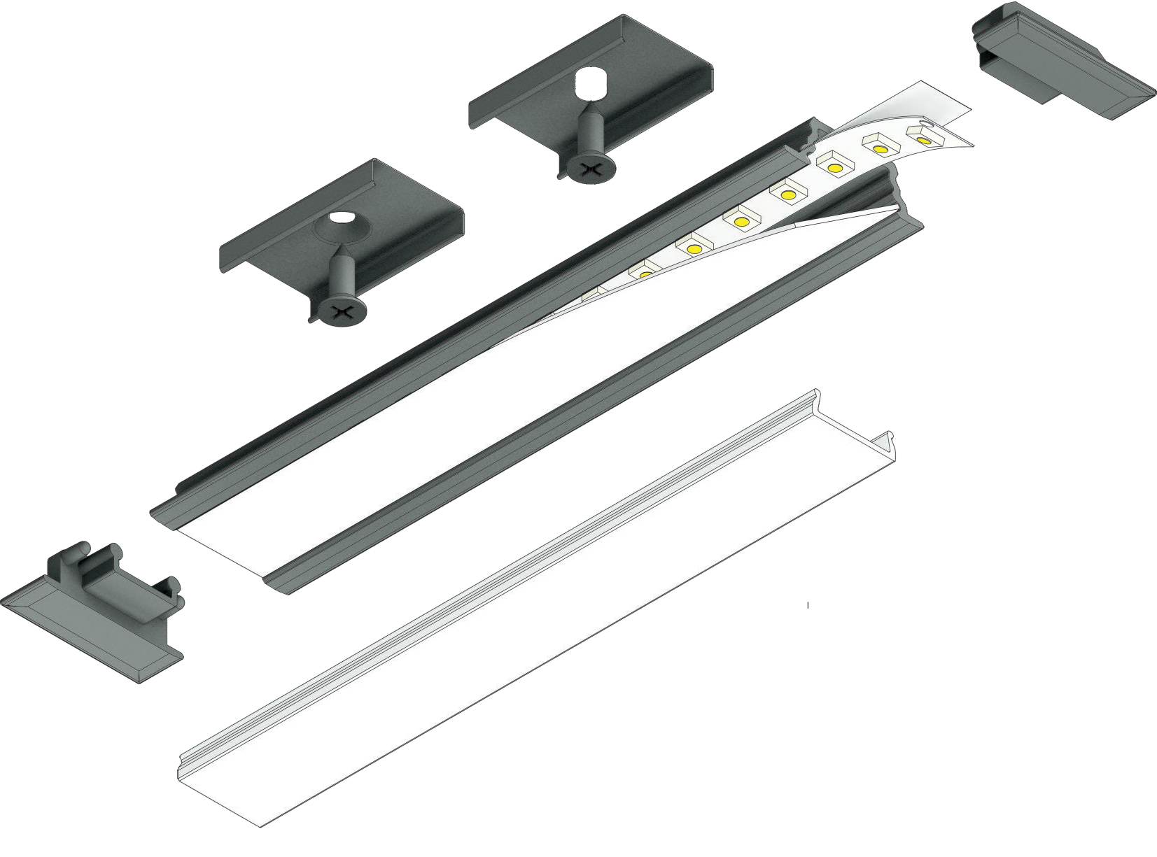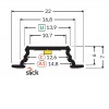 Vestavný, profil pro LED pásky, materiál hliník, povrch surový/bílý/elox šedostříbrný mat/černý, max šířka LED pásků 10mm, rozměry 22x7mm, délka dle typu