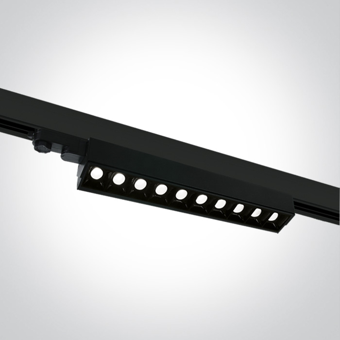 Svítidlo do 3F lišty, buňkové, nast. směr svícení +- 45°, těleso hliník, povrch černá/bílá, LED 10x5W, 5800lm, teplá 3000K/neutrální 4000K, vyzař. úhel 30°, Ra80, 230V, IP20, tř.1, rozměry 580x80x60mm.