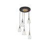 GERTA 5x60W E27 - Závěsné svítidlo, základna kov, povrch černý mat, dekor. přírodní dřevo, sklo čiré, pro žárovku 5x60W E27, 230V, tř.1, IP20, d=500mm, závěsný kabel černý s textilním úpletem l=550-1325mm, lze