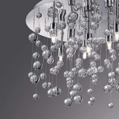 STARIO 8x40W G9 - Stropní svítidlo, základna kov, povrch chrom lesk, dekorativní čiré kouličky různých velikostí, žárovka 8x40W, G9, 230V, IP20, tř. 1, rozměry d=405mm, h=315mm