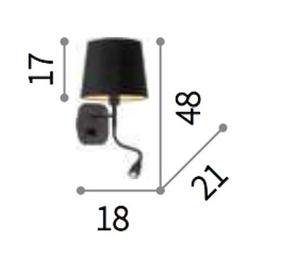 PLYMOUTH - Nástěnné svítidlo, flexi rameno, husí krk, těleso kov, povrch vnitř zlatá fólie, vnější černý textil, pro žárovku 1x40W E14, + LED 1W, 45lm, 230V, IP20, tř.1, rozměry d=180mm, h=480mm, vč vyp