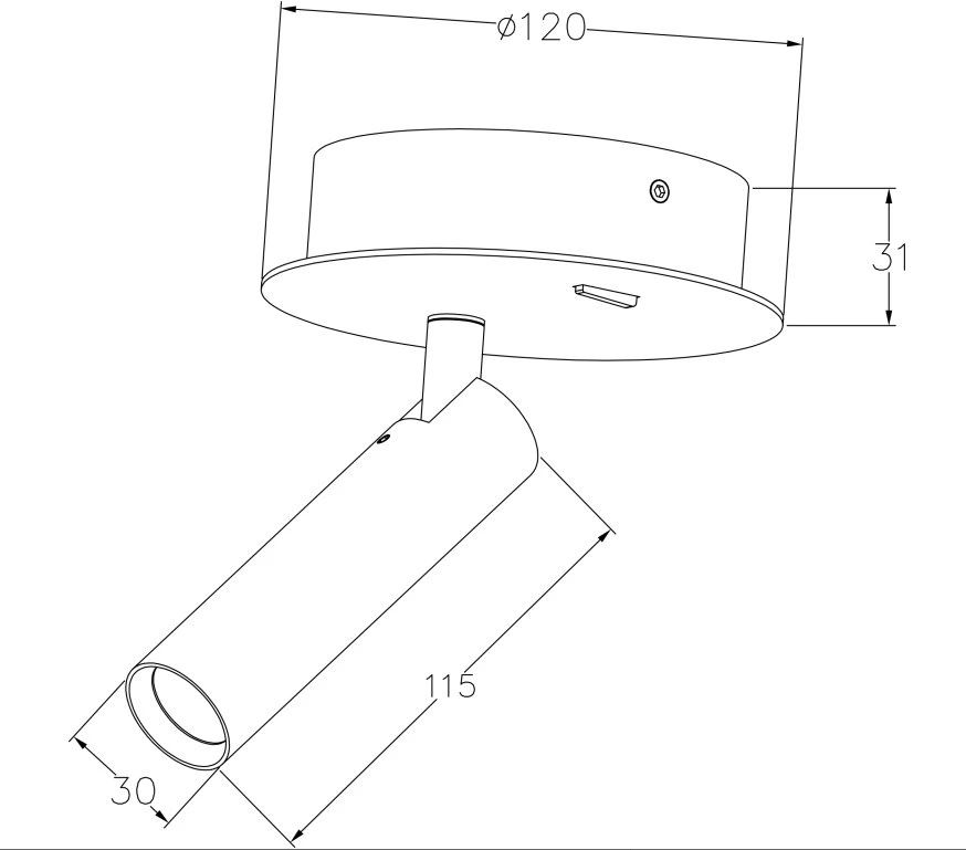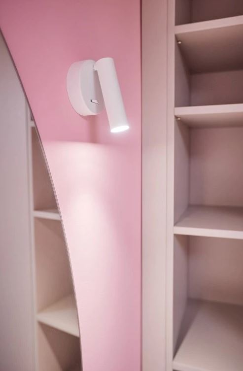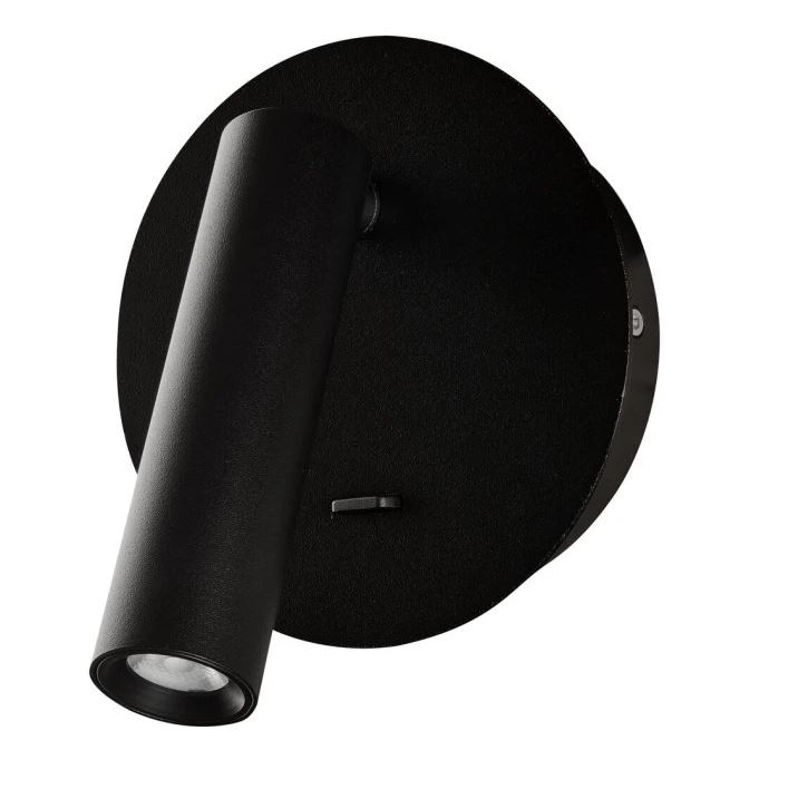 Nástěnné bodové svítidlo, nast. směr svícení, těleso kov, povrch bílá/černá, LED 5W, 430lm, teplá 3000K, 230V, IP20, tř.1, rozměry d=120mm, h=115mm, vč vypínače na tělese.