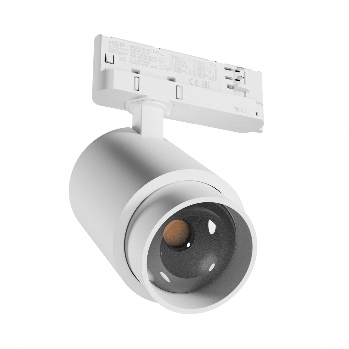 Bodové kolejnicové svítidlo, těleso hliník, povrch bílá, černá, LED přepín příkon 6- 20W, 2500lm, neutrální 4000K, ZOOM plynule nastavitelný vyzař úhel 8°-45° Ra90, 230V, IP20, 82X160X222mm, 3F adaptér NORDIC ALUMINIUM