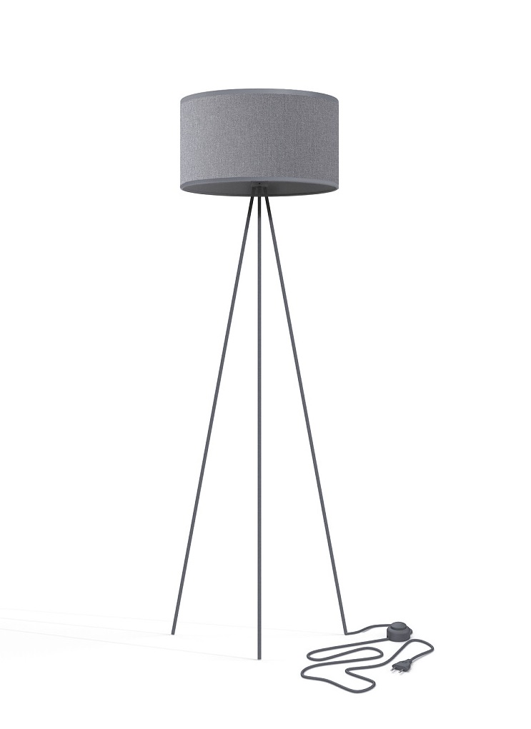 Stojací lampa, těleso kov/plast, stínítko tkanina, povrch šedá nebo černá, vně zlatá, pro žárovku 1x25W, E27, 230V, IP20, tř.1, rozměry d=450mm, h=1560mm, přívodní kabel l=1600mm, vč vypínače na kabelu