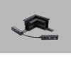 Rohová L spojka 90°, horizontální odbočení, vestavného magnetického systému, materiál hliník, povrch černá/bílá, stmívání DALI, 48V, rozměry 135x135mm.