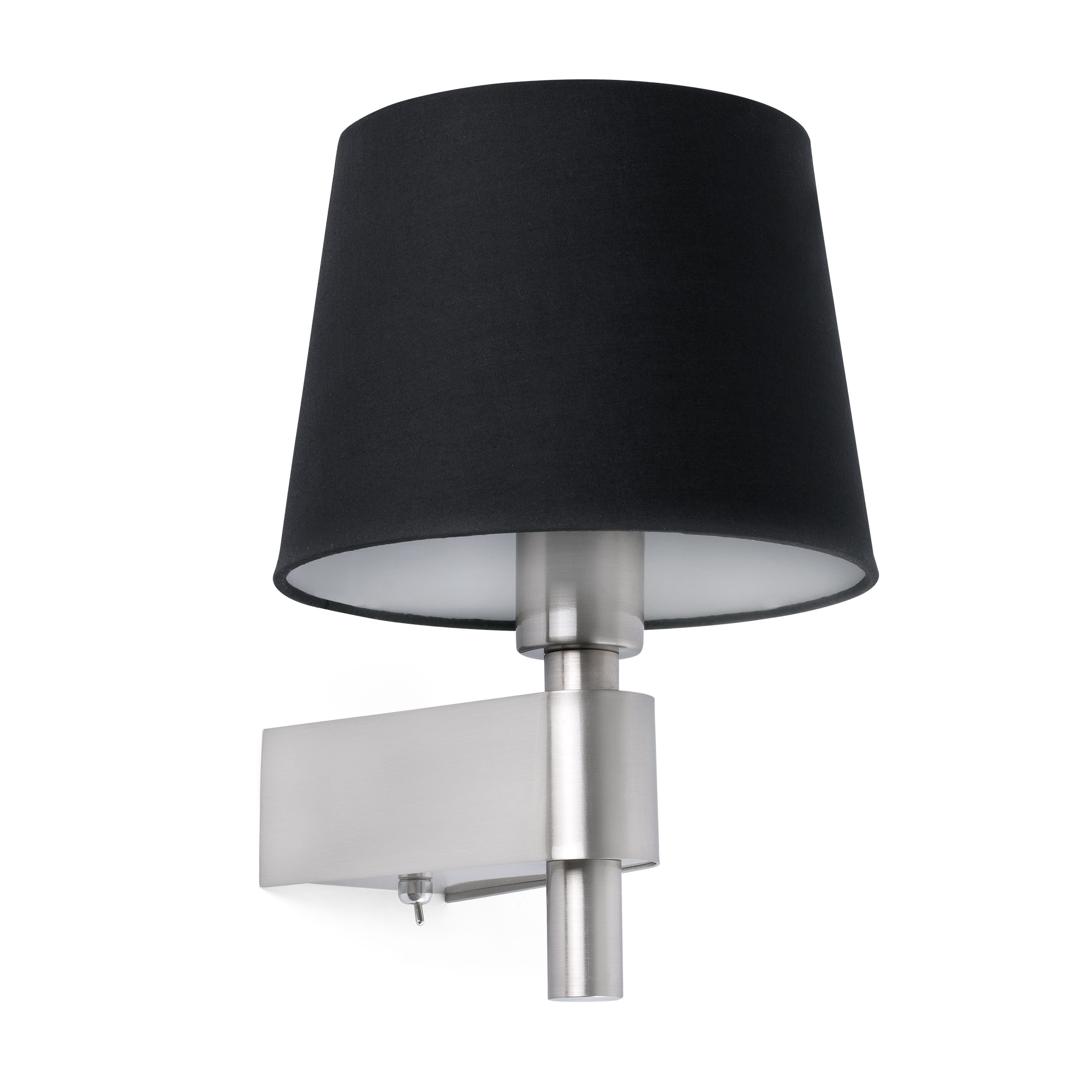 Nástěnné svítidlo, materiál kov, povrch nikl mat, stínítko textil bílý nebo černý, pro úspornou žárovku 1x20W E27, 230V, IP20, tř.1, rozměry 290x225x200mm, s vypínačem.