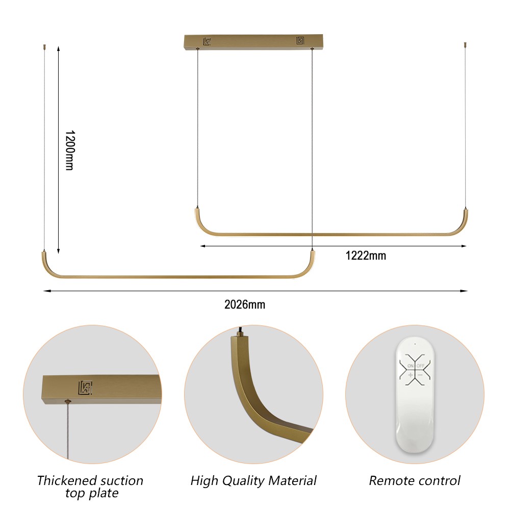 LED 53W Tuya ZigBee CCT - Závěsné svítidlo, kov, zlatá, dif plast opál, LED 53W, 3640lm, smart TUYA, Zigbee 3.0, dálk ovl. (souč.) nebo tel. CCT nast teplota teplá 3000K-denní 6000K, stmív, 1600x55mm, vč. záv. lank l=1500mm.