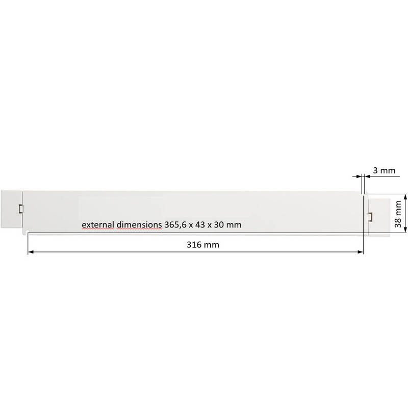 | Rozměry | 365,6x43x30mm. Uváděné rozměry jsou pouze informativní a výrobce je může změnit. |