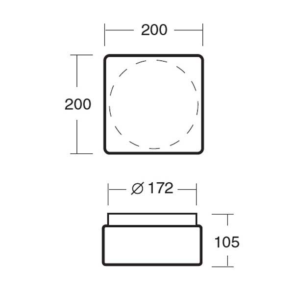 Rozměry 200x200mm, h=105mm. Uváděné rozměry jsou pouze informativní a výrobce je může změnit.