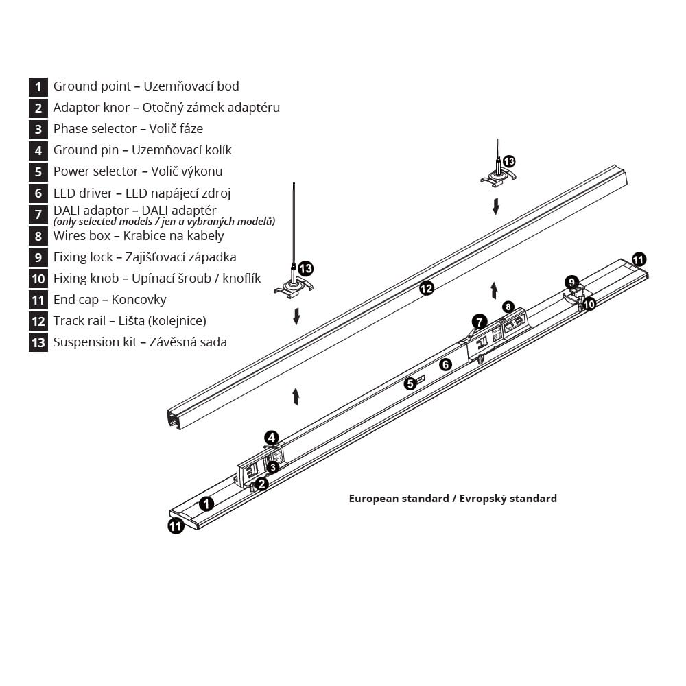 | Způsob připojení svítidla | Svítidlo je vybaveno adaptérem, který se nasadí a zajistí do třífázové napájecí lišty. |