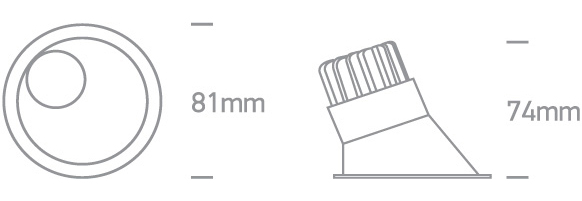 LOMEL BI R 8W, ASYMETRICKÉ - Stropní podhledové, bodové, Darklight, svítidlo, ASYMETRICKÉ svícení, těleso kov, povrch bílá, LED 8W, 560lm, teplá 3000K, vyzař. úhel 50°, 230V, IP20, tř.2, rozměry d=81mm, h=74mm.