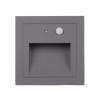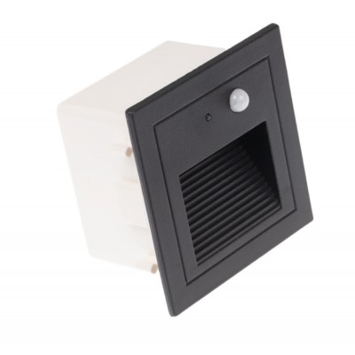 Vestavné svítidlo do stěny, venkovní, senzor pohybu PIR, dosah 3m, čas 35s, těleso kov, povrch bílá/černá/šedá, LED 3W, teplá 3000K/neutrální 4500K/denní 6000K, 230V, IP65, rozměry 90x90x48mm, vč. instalačního boxu.