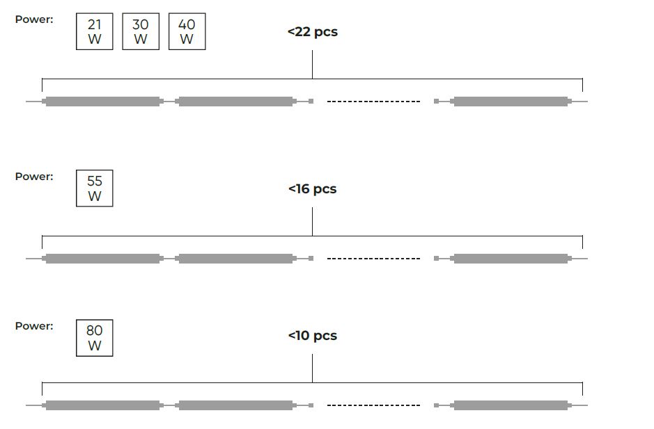 Výhodné vlastnosti Možnost průběžného zapojení svítidel v jedné linii