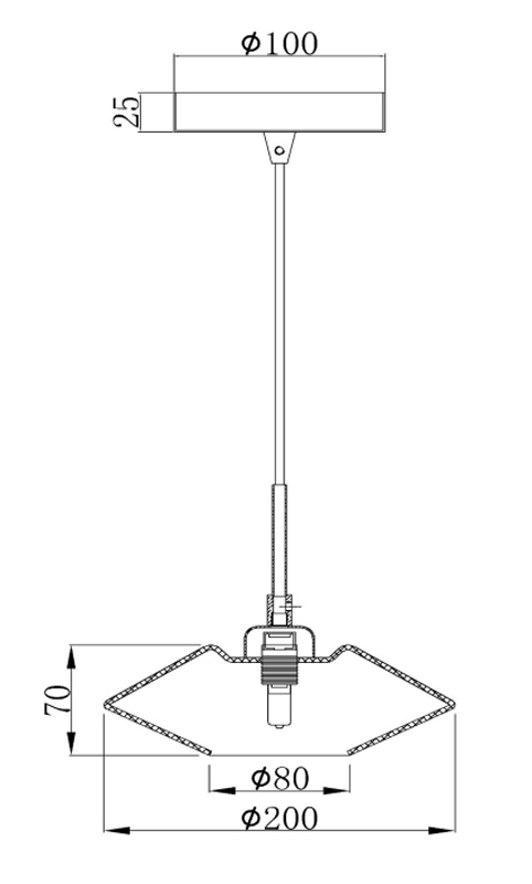 | Rozměry | d=200mm, vč závěs kabelu l=1400mm, lze zkrátit. Uváděné rozměry jsou pouze informativní a výrobce je může změnit. |