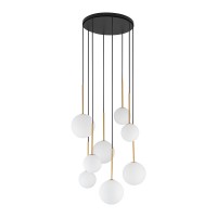 Závěsné svítidlo, základna kov, povrch černozlatá, difuzor sklo mléčné, pro žárovku 8x12W, G9, 230V, IP20, tř.1, rozměry 1250x430x350mm, lze zkrátit