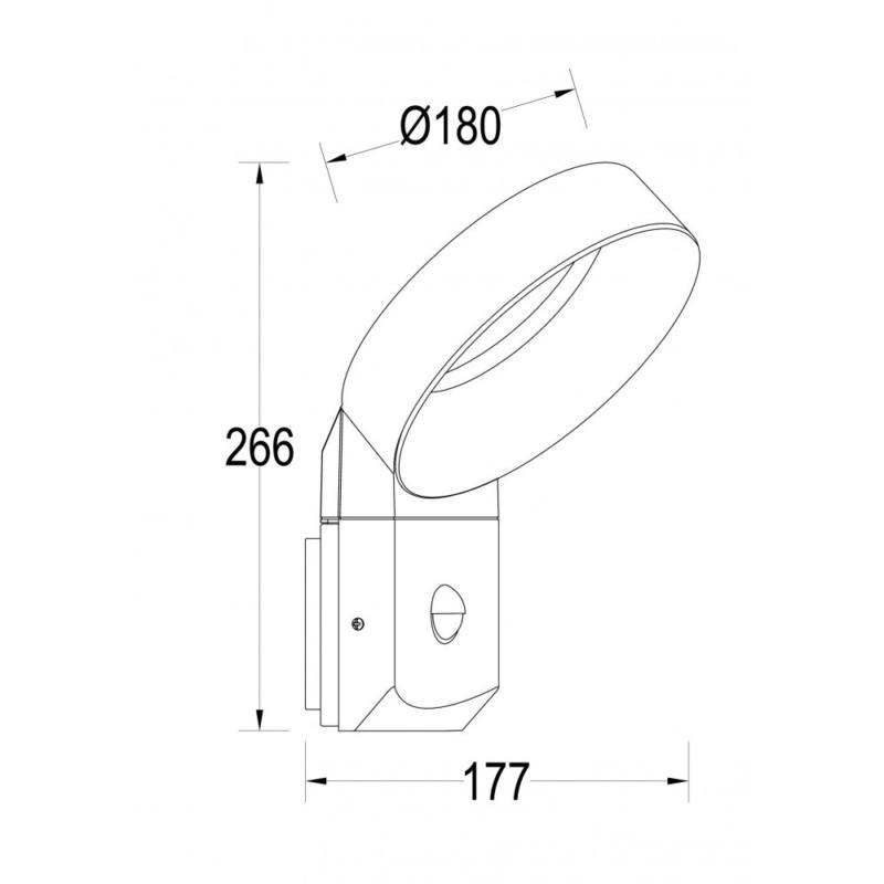 KROUL PIR 14W - VÝPRODEJ Nástěnné venkovní svítidlo, senzor pohybu PIR, záběr čidla 100°, dosah 10m, čas 1min-8min, hliník, šedočerná, dif.r plast opál, LED 14W, 800lm, teplá 3000K, Ra80, 230V, IP54, tř.1, 266x1