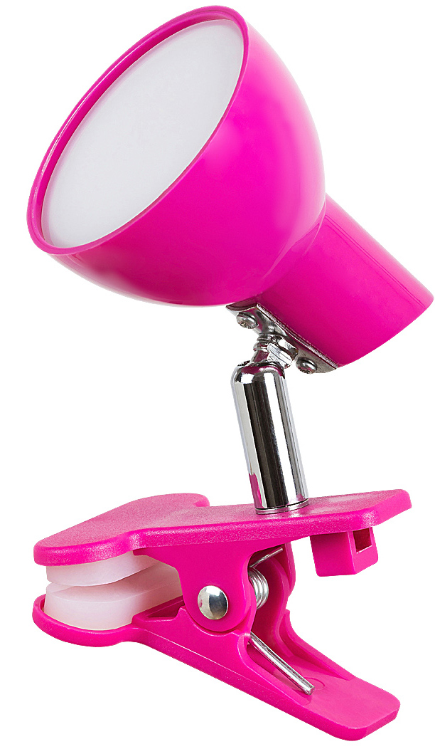 Stolní lampa s klipem, skřipcem, těleso kov, povrch bílá/černá/modrá/šedá/zelená/růžová, difuzor plast, LED 5W, 360lm, teplá 3000K, 230V, IP20, tř.1. rozměry d=70mm, h=170mm.
