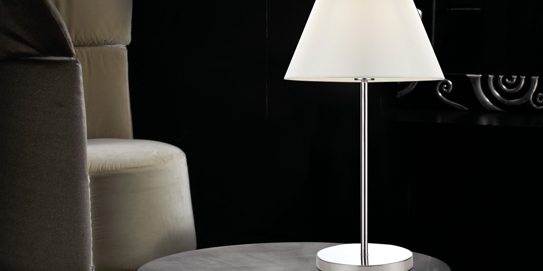 RASHES 1X15W E27 stolní - Stolní dekorativní lampa, materiál kov, povrch chrom, stínítko bílá, pro žárovku 1x15W, E27, 230V, IP20, tř.2, rozměry d=330mm, h=540mm