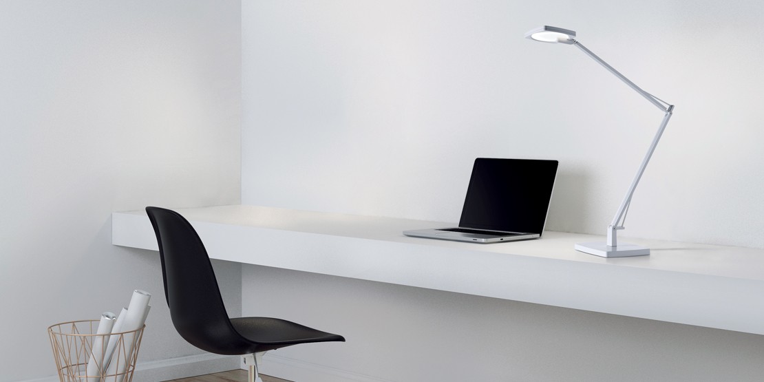 BASTIA stolní lampa - Stolní lampa, materiál kov, povrch bílá, difuzor plast, LED 8W, 450lm, teplá 3000K, 230V, IP20, tř.2, ramena 400+400mm, hlavice d=140mm, vč. vypínače s regulací stmívání