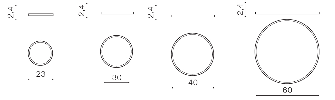 Stropní svítidlo, těleso hliník, povrch bílá/černá, dif plast opál, LED 18W/24W/32W/45W, CCT přepínatelná teplota teplá 2800K neutrální 4000K denní 6000K, stmív TRIAC, Ra90, 230V, IP40, rozměry dle typu.