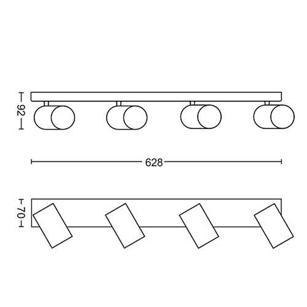 Stropní, bodové svítidlo, nastav směr svícení, těleso kov, povrch černá, chromové detaily, krycí plast transparentní, pro žárovku 4x5,5W, GU10, 230V, IP20, tř.1, rozměry 92x118x628mm