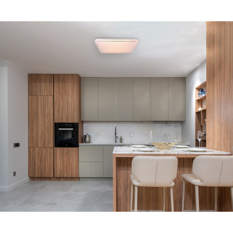 PIRO 48W TUYA-W, CCT - Stropní svítidlo, difuzor plast opál, dekor chrom, LED 48W, 4400lm, dálk ovl. (včetně), nebo telefon TUYA WiFi, stmívatelné, CCT nast teplota3000K-6400K , Ra80, 230V, IP20, 495x495x80mm.