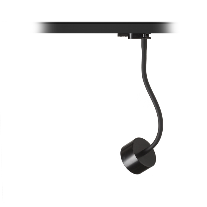 Bodové svítidlo, husí krk, těleso hliník, povrch chrom/šedostříbrná, bílá, černá, pro LED 1x7W, GX53, 230V, IP20, tř.1, rozměry d=90mm, h=350mm, vč adaptéru do 3F lišty kompatibilní NORDIC ALUMINIUM, EUTRAC